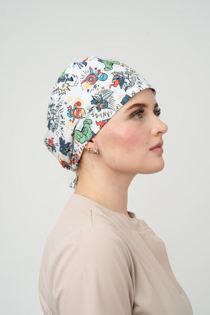 • Gorro quirúrgico de diseño clásico, tecnología antifluidos, jareta ajustable, print exclusivo y de gran adaptabilidad.